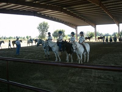 Monday - Thursday mornings Day Campers have an unmounted lesson using the CHA Riding Manuals and a Riding Lesson covering topics out of the Manual. In the afternoon Campers do assorted activities with or on the horses.